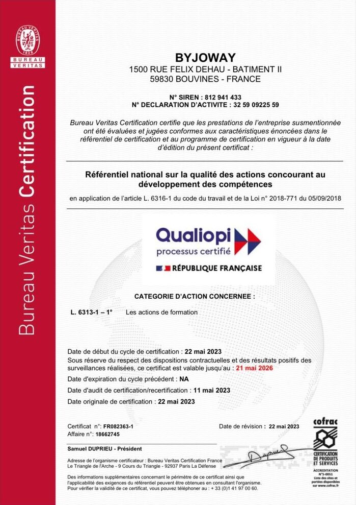 – 100% des stagiaires recommandent le centre de formation BYJOWAY.